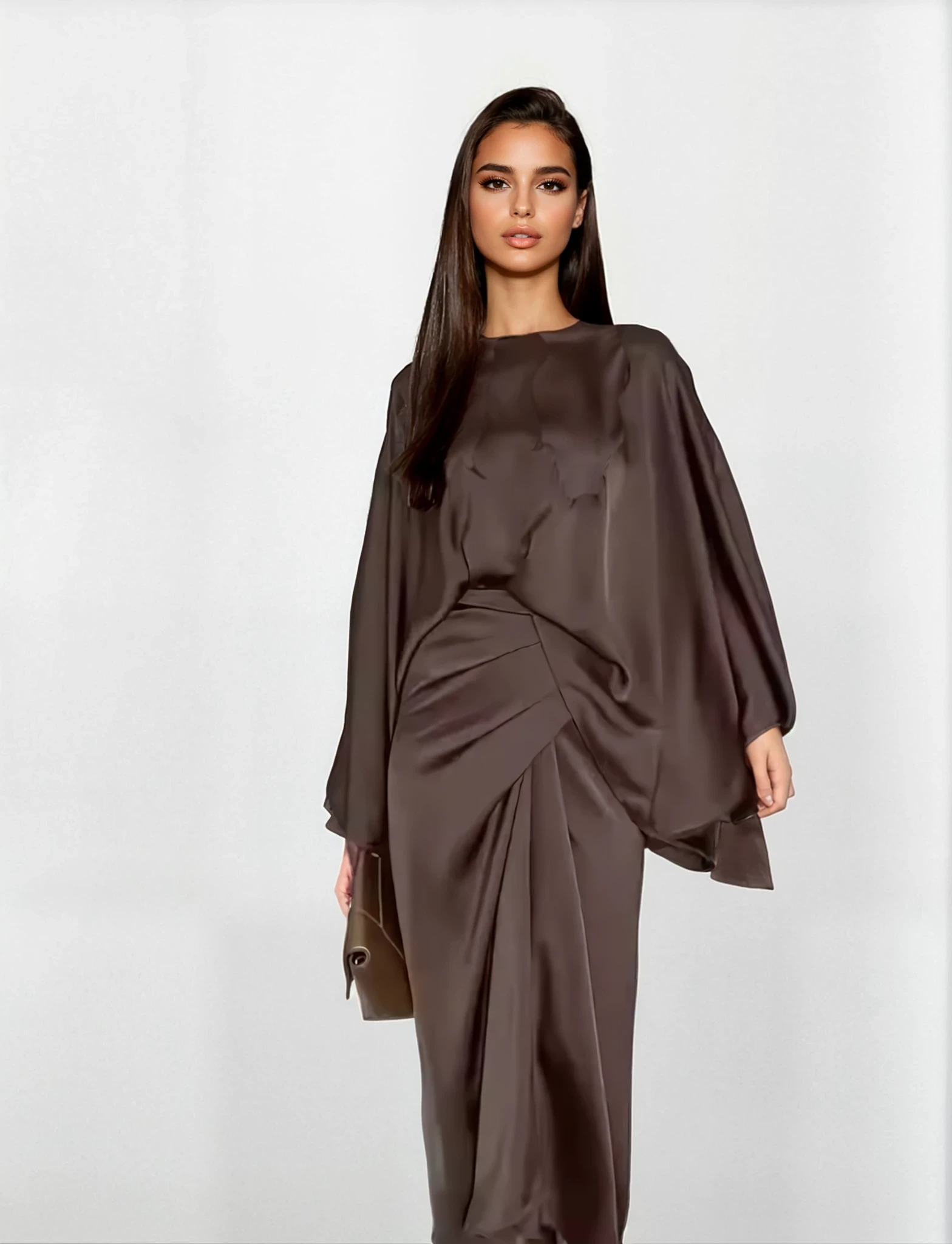 ⭐Avslappnad Klänning Med Fladdermusärmar Och Draperad Satin⭐