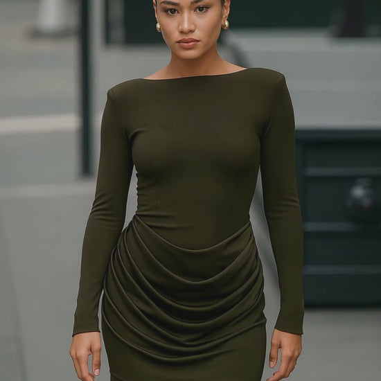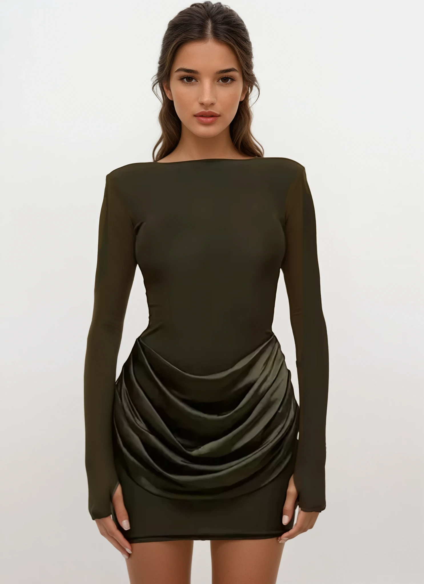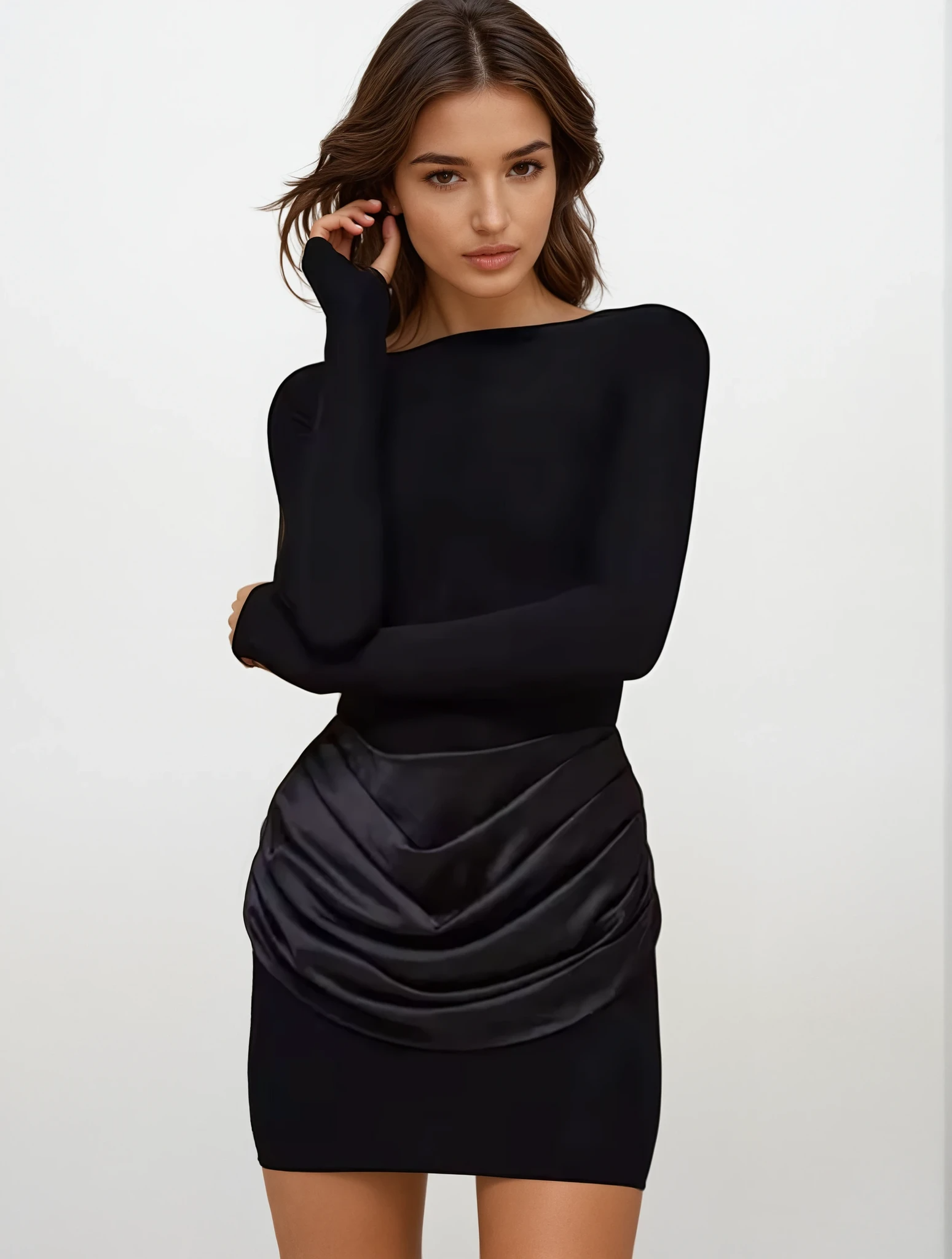Förhöj din garderob med denna enfärgade plisserade miniklänning , utformad för att skapa en raffinerad, modern silhuett. Den rena platta halsringningen ger en modern, polerad touch, medan de hellånga ärmarna erbjuder balans, täckning och tidlös femininitet. Mjuka veck förstärker rörelse och form, vilket ger klänningen ett sofistikerat flöde som enkelt övergår från dag till kväll.