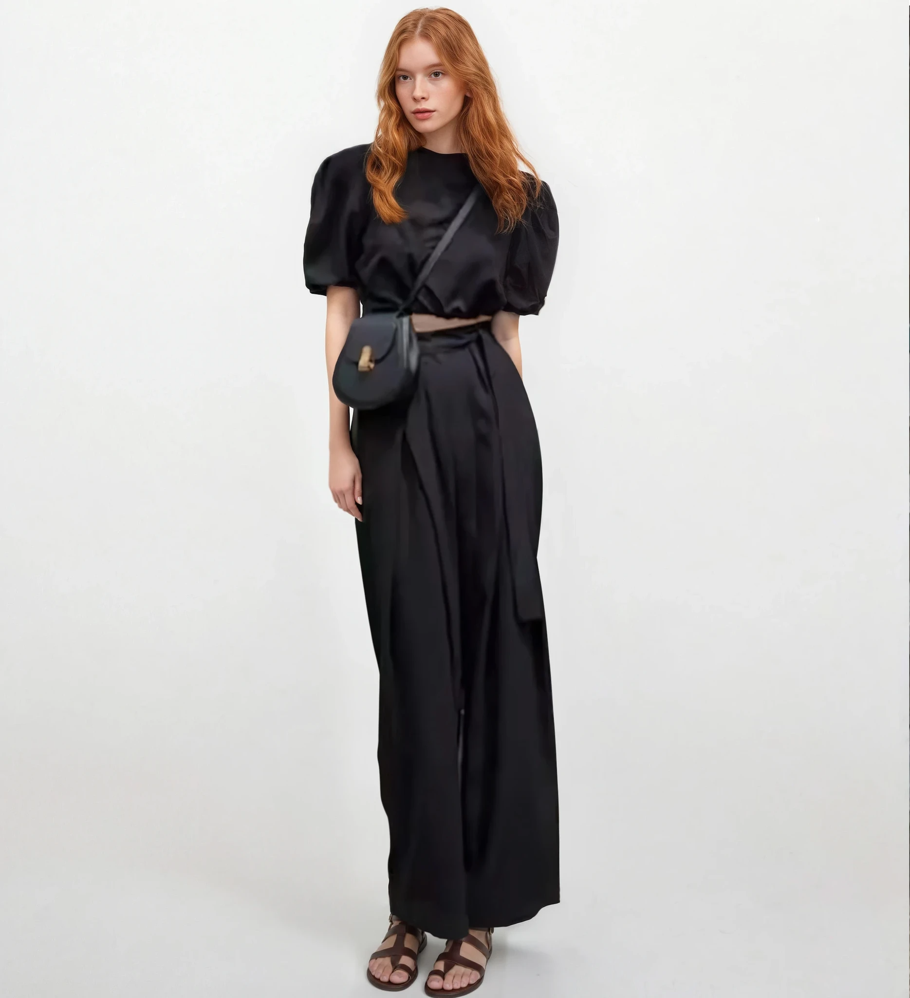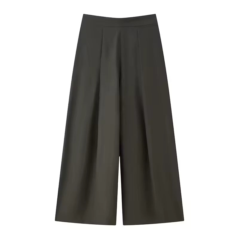 Upplev enkel sofistikering med dessa lösa byxor med hög midja och vida ben , designade för att ge komfort, stil och modern elegans till din vardagsgarderob. Med en smickrande rak silhuett och mjukt, fallande tyg ger dessa byxor en elegant look utan att offra bekvämlighet hela dagen.