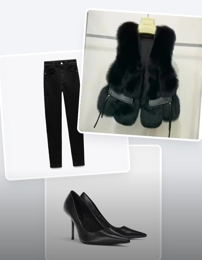 Med sin smickrande V-ringade silhuett och skräddarsydda västskärning övergår detta plagg sömlöst från dag till kväll och erbjuder en raffinerad balans mellan klassisk elegans och modern stil. Oavsett om det bärs över stickat plagg, klänningar eller skräddarsydda kappor, ger det en omisskännlig känsla av lyx till din garderob.