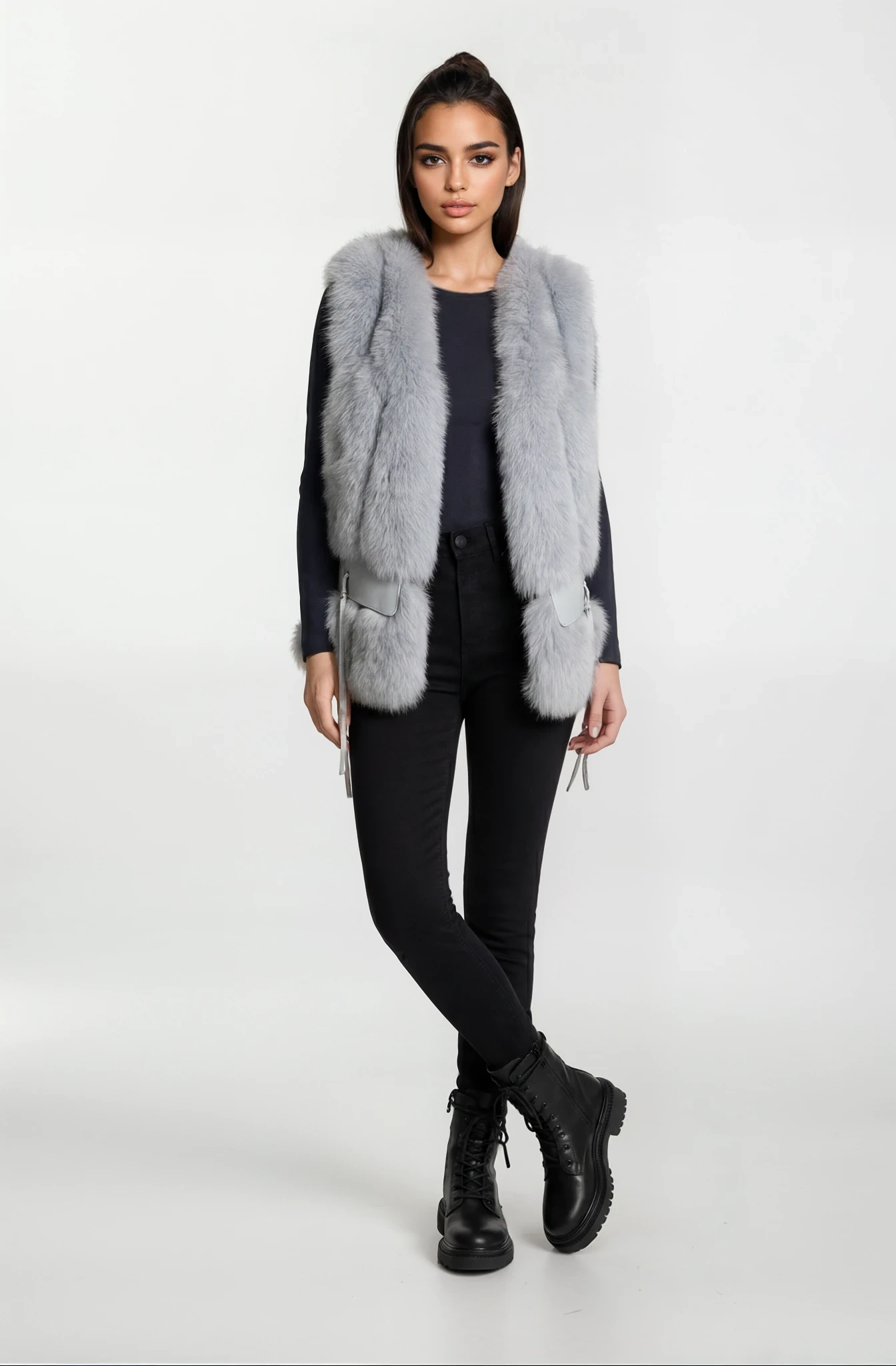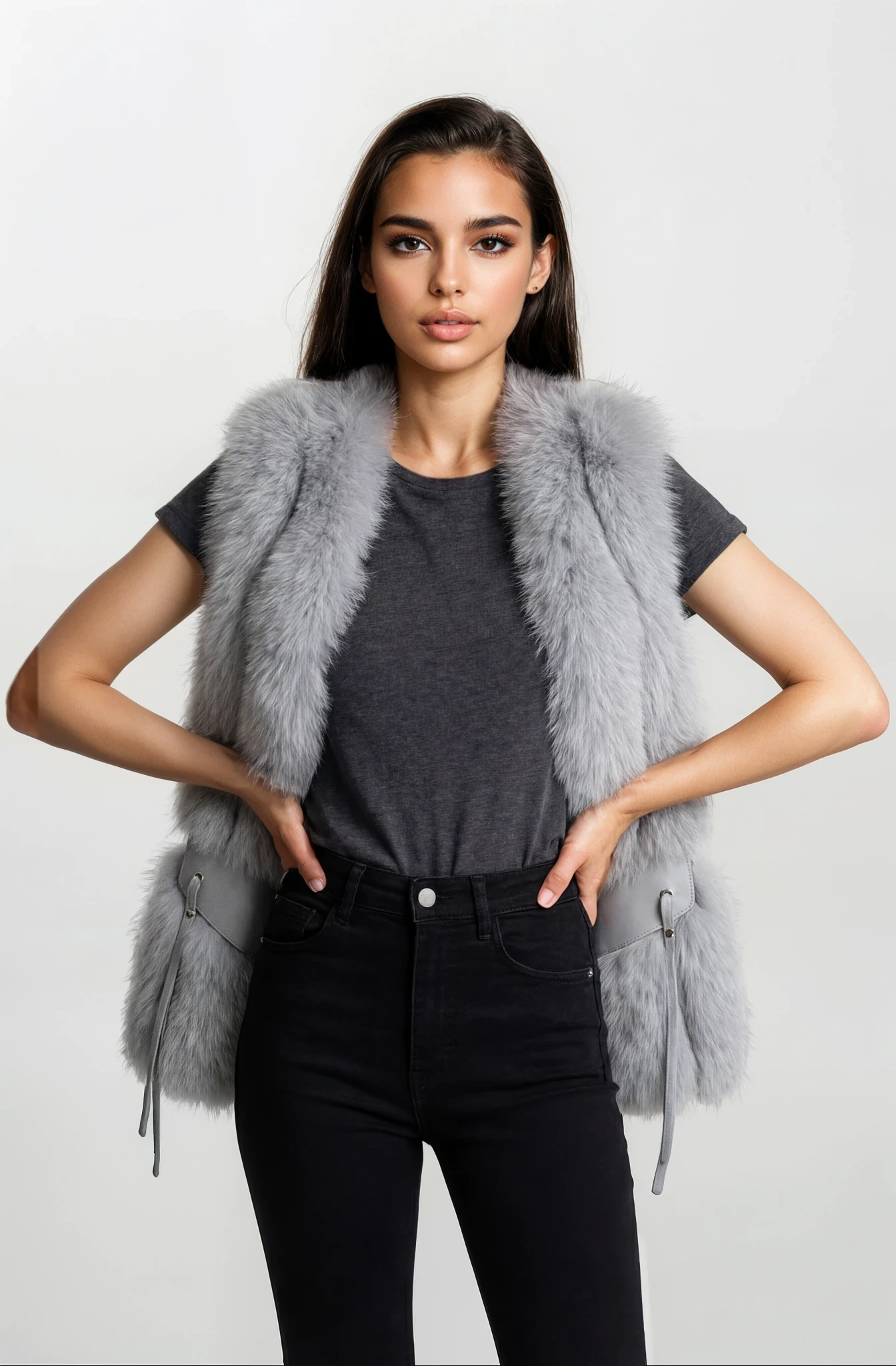 Svep in dig i diskret lyx med den här västen i äkta rävpäls – ett iögonfallande plagg designat för kvinnor som uppskattar kvalitet, värme och enkel sofistikering. Tillverkad av premium äkta rävpäls, ger denna väst en rik textur och naturlig volym som omedelbart lyfter vilken höst- eller vinterlook som helst.