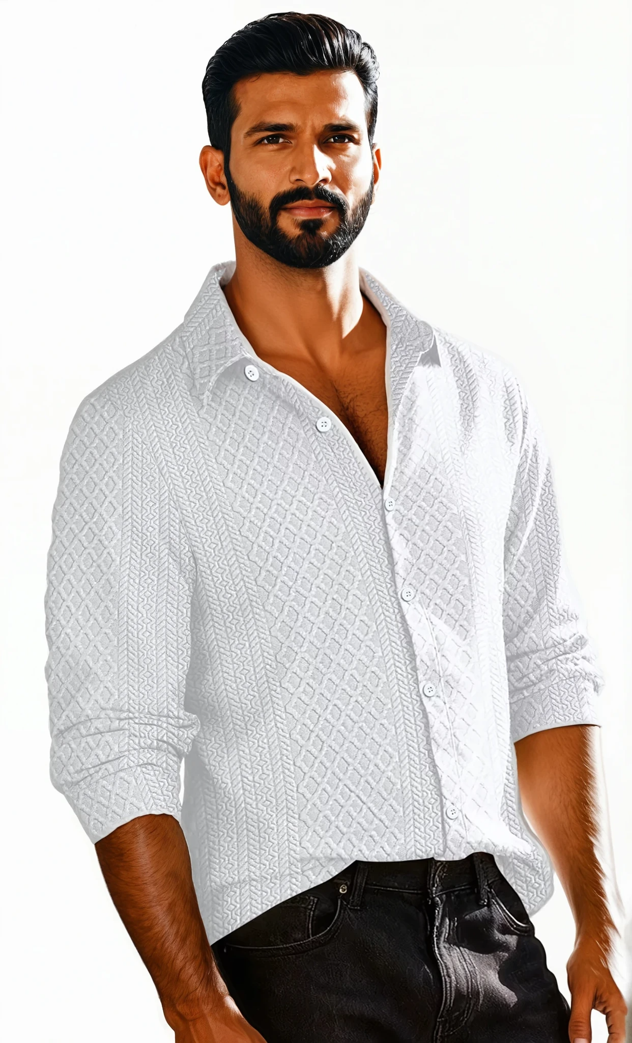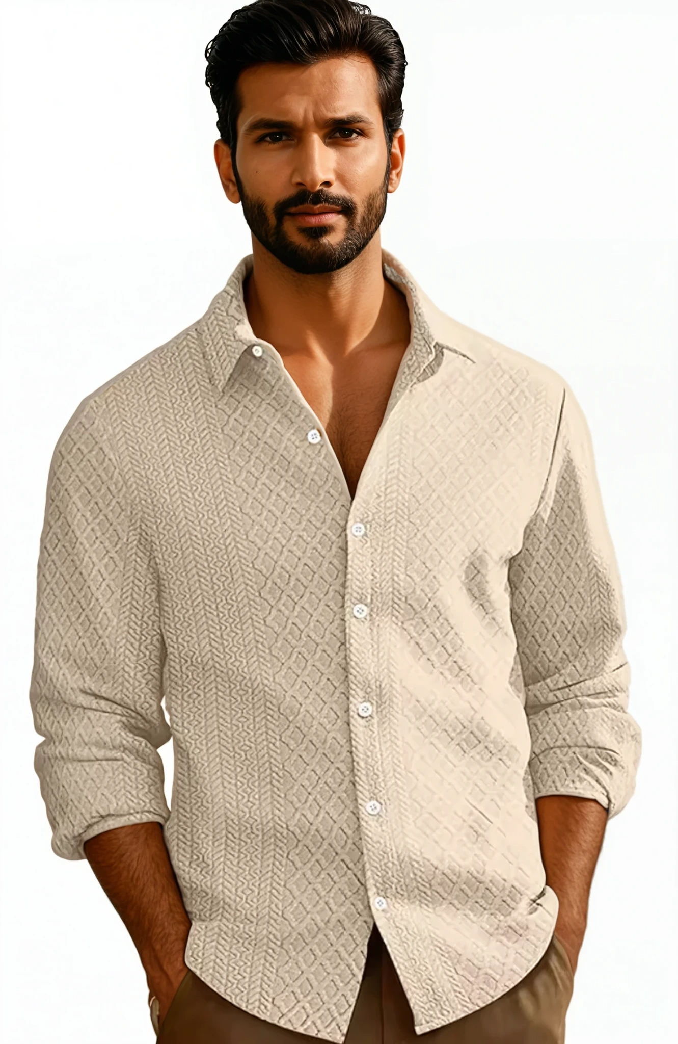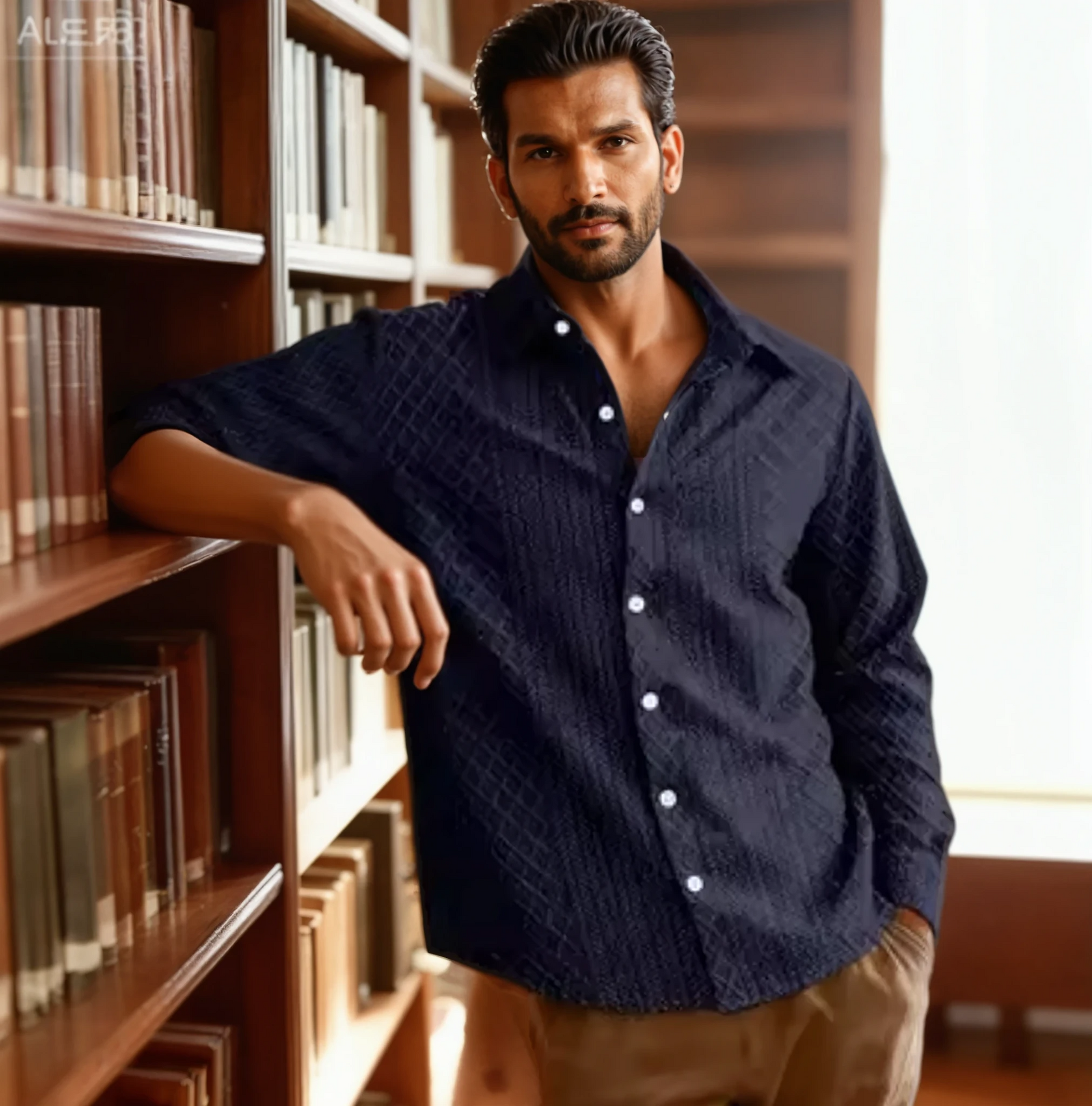Avslappnad men ändå elegant, denna skjorta är gjord för män som värdesätter rena linjer, mångsidighet och lugn självkänsla . Bär den uppknäppt för en elegant look eller lätt öppen för en mer avslappnad, modern känsla.
