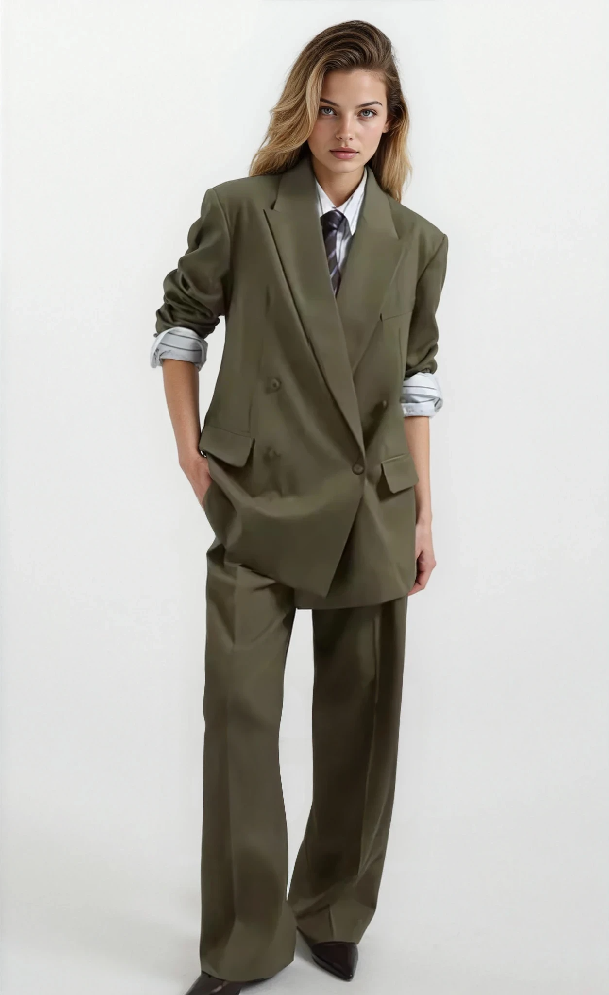 Förhöj din garderob med vårt överdimensionerade dubbelknäppta kostymset för kvinnor , den perfekta blandningen av streetwear-cool och elegant formell stil. Denna tvådelade byxkostym ger en avslappnad men ändå raffinerad silhuett, perfekt för kvinnor som vill ha komfort utan att offra mode.