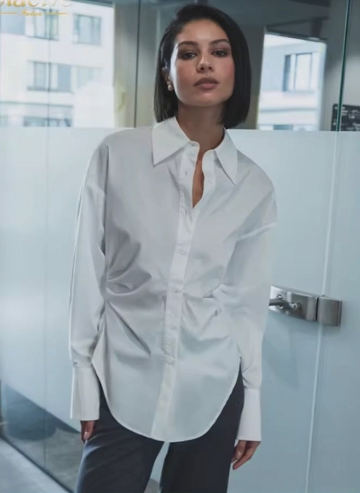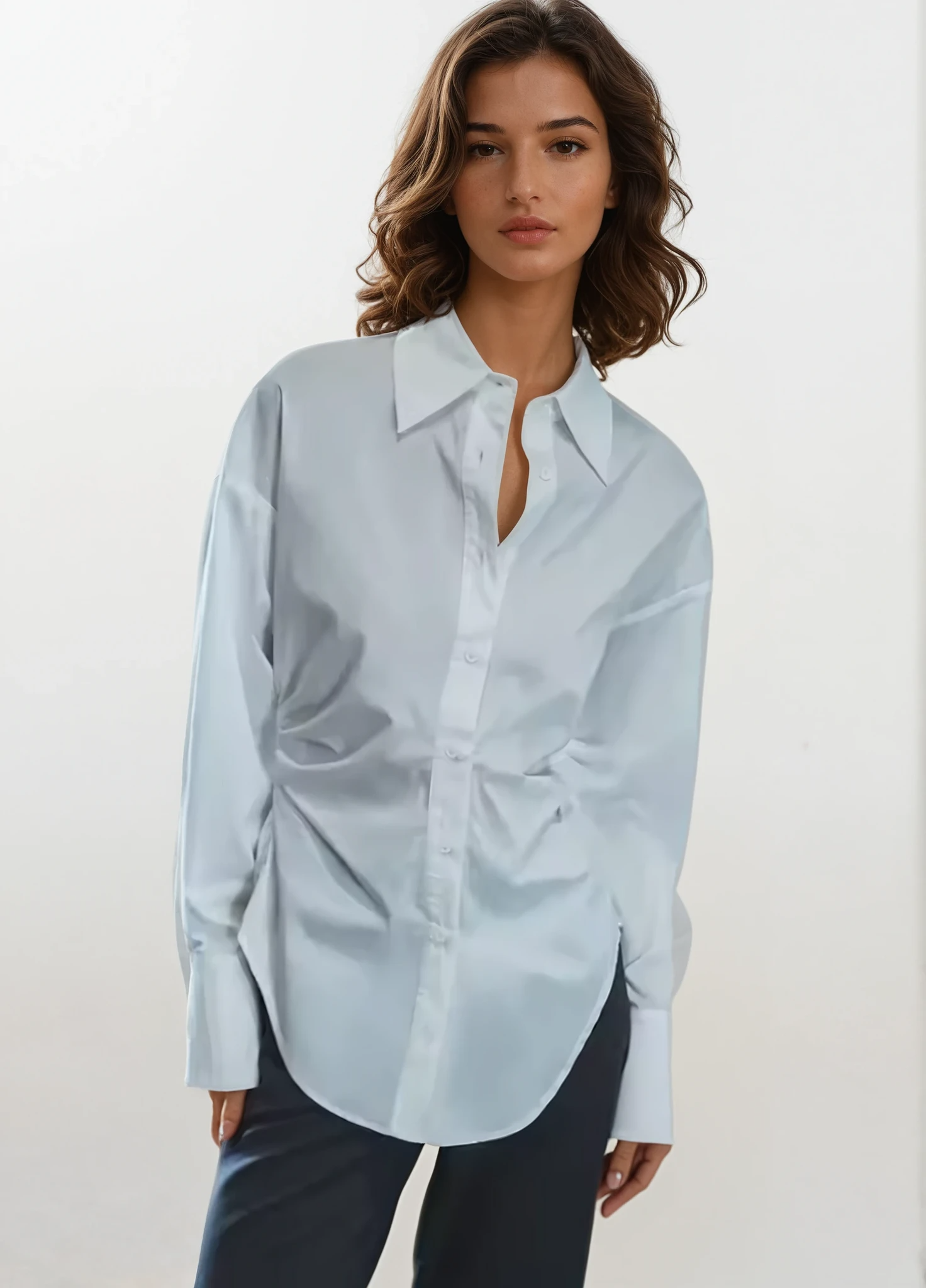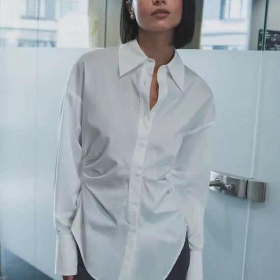Perfekt för både kontorstid och elegant vardagsbruk, denna blus erbjuder en elegant, minimalistisk estetik som aldrig går ur modet. Strukturen håller den snygg, medan den mjuka bomullen garanterar komfort hela dagen – ett absolut garderobsessentiellt för kvinnor som uppskattar elegant enkelhet.