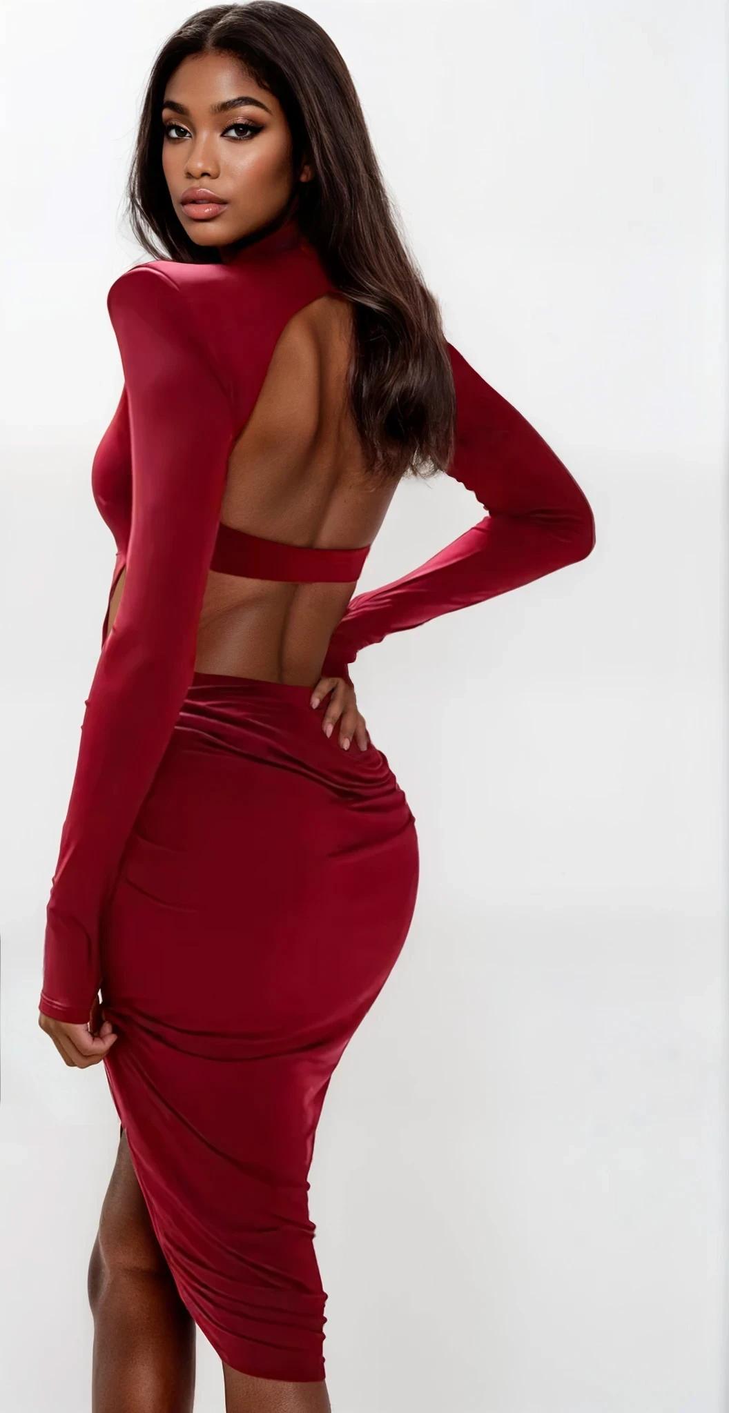 De rynkiga detaljerna framhäver dina kurvor vackert, medan den ihåliga, midjelösa skärningen ger en unik streetchic touch. Perfekt för höstkvällar, fester, dejtkvällar eller vilket ögonblick som helst du vill göra oförglömligt. Slipp in i den här klänningen och låt din stil tala för sig själv.
